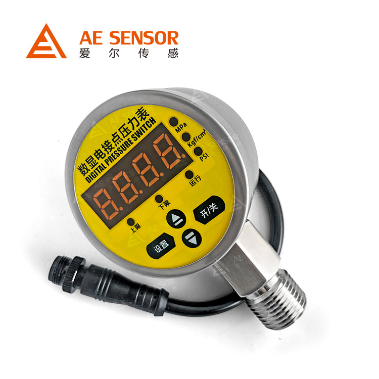 南京愛爾傳感生產的AE-P是一款集壓力測量、顯示、控制于一體的新型電接點壓力表,設置方便,具有一鍵清零,壓力單位切換能多種功能,應用于液壓機、注塑機、高壓清洗機、熱工機械能設備配套。